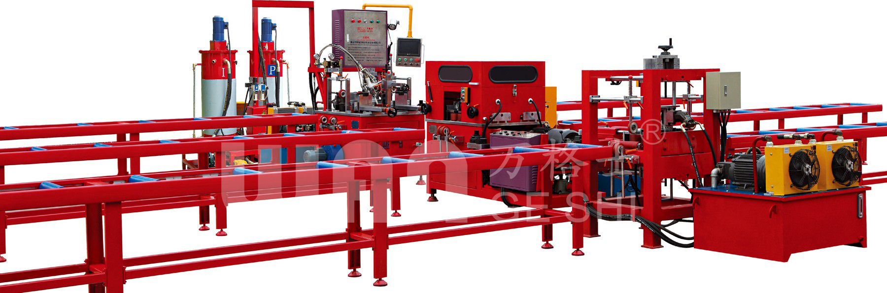 它的核心作用是將兩種液態的化學組分,按精確比例混合,將其注入到鋁合金型材的隔熱槽內。
