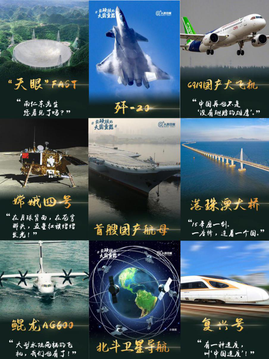 2020努力生長,成就中國制造之底氣#2019大國重器名場面# 中國僅用幾十年的時間,走完了發達國家幾百年走過的工業化歷程。中國“天眼”、北斗衛星、“復興號”動車組……這些國之重器,就是中國的底氣,它們承載著國人的夢想,彰顯了中國的實力。圖源:人民日報 2020年,注定是具有里程碑意義...發布日期:2020-01-07 -
