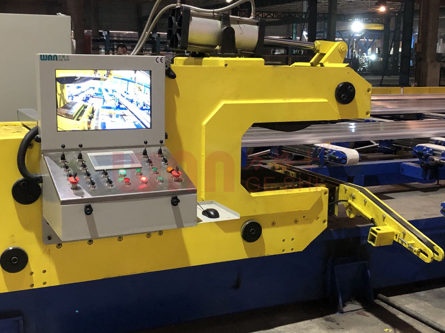 滑出臺、取料臺、冷卻臺、拉直機過橋、拉直機、冷卻臺、鋸切臺成品鋸、定尺臺及定尺裝置等,并設有獨立的液壓、電氣控制裝置。